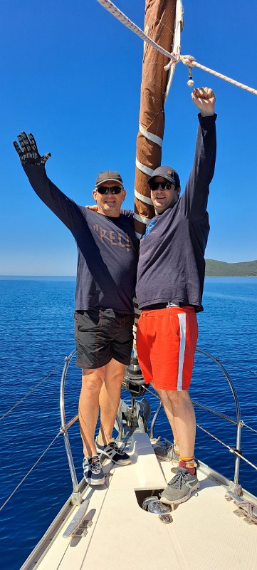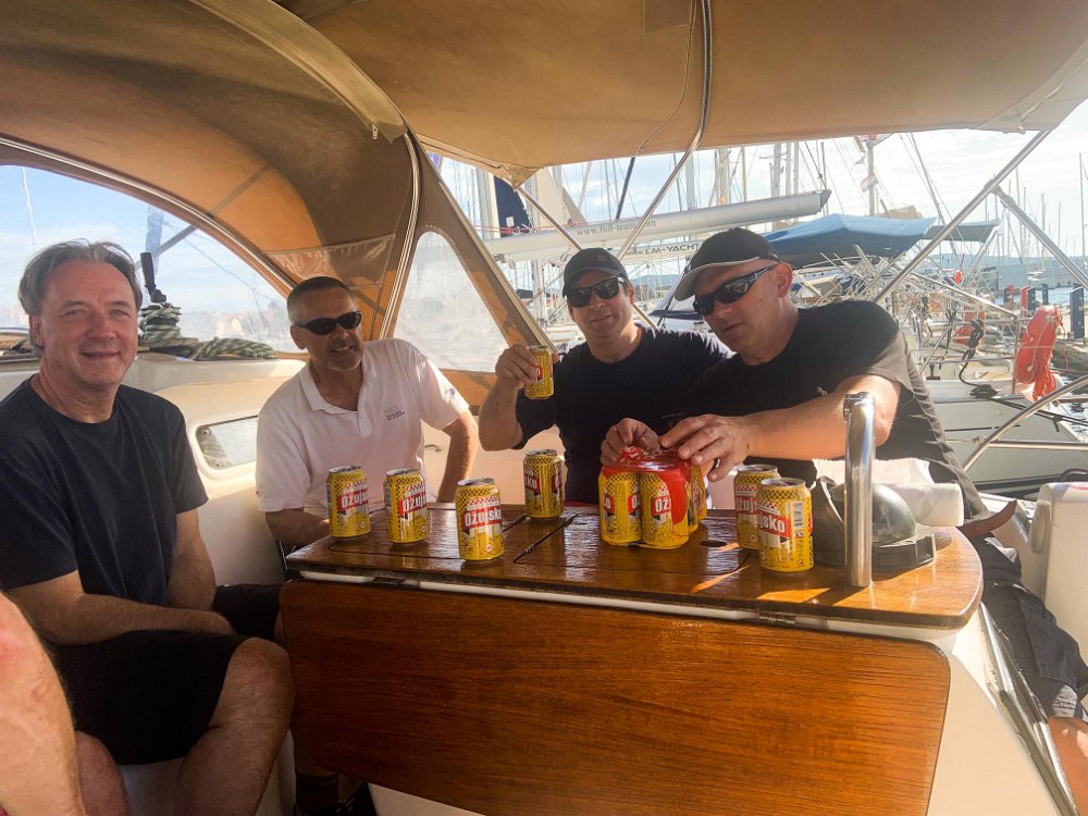 Briefing pred prvim izplutjemNaša lepoticaZ leve: Mare, Darjo, Martin, Boštjan. V ozadju Jure in ElvisSkiper in prvi asistentElvis podpira prvi vogal barkeElvis podpira drugi vogal barke. Ta in prejšnji posnetek ni mišljen kot reklama za pivo.