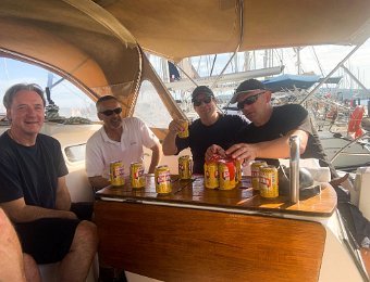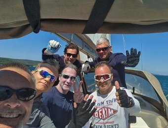 Briefing pred prvim izplutjemNaša lepoticaZ leve: Mare, Darjo, Martin, Boštjan. V ozadju Jure in ElvisSkiper in prvi asistentElvis podpira prvi vogal barkeElvis podpira drugi vogal barke. Ta in prejšnji posnetek ni mišljen kot reklama za pivo.
